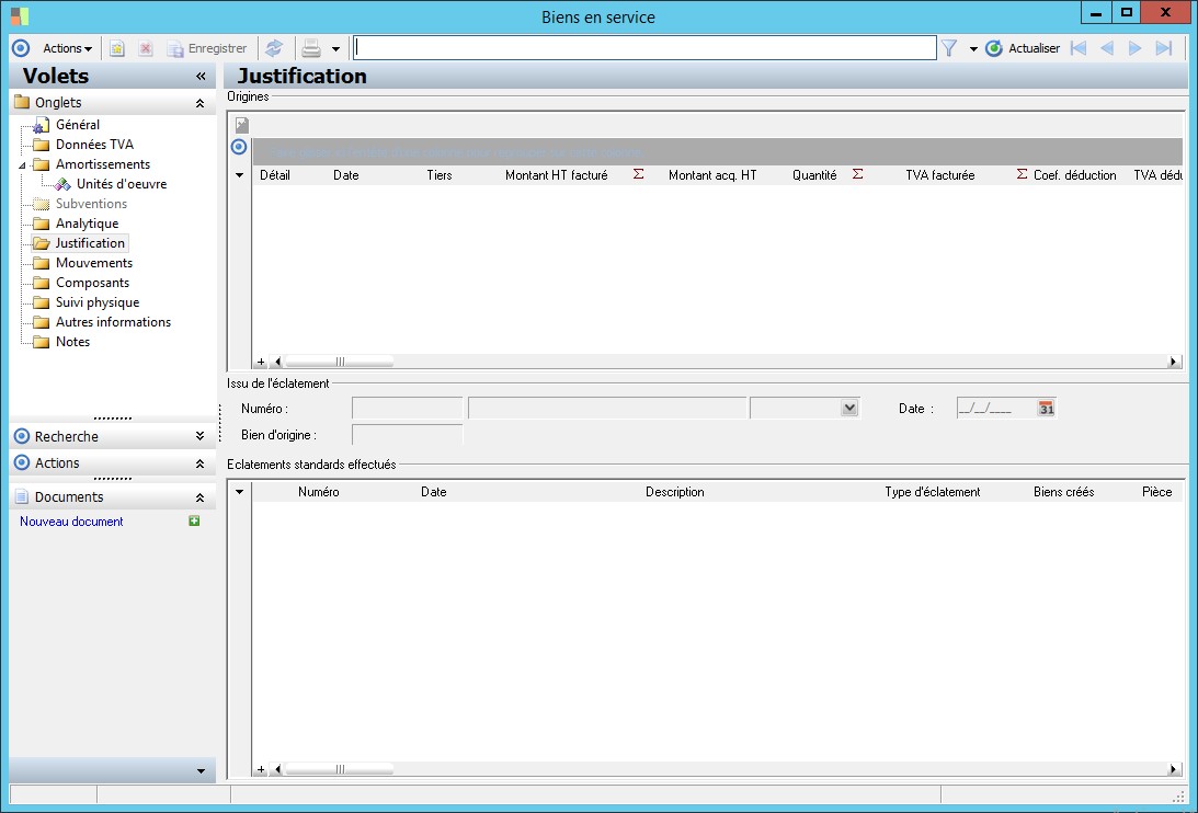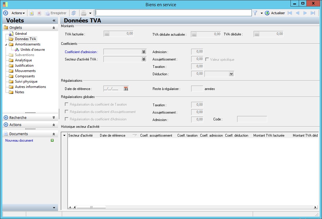 Cette zone permet d'indiquer si le bien est acquis neuf ou d'occasion. Cette information n'est plus modifiable lorsque le bien est valide. |
