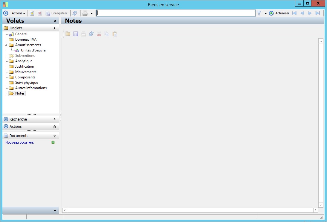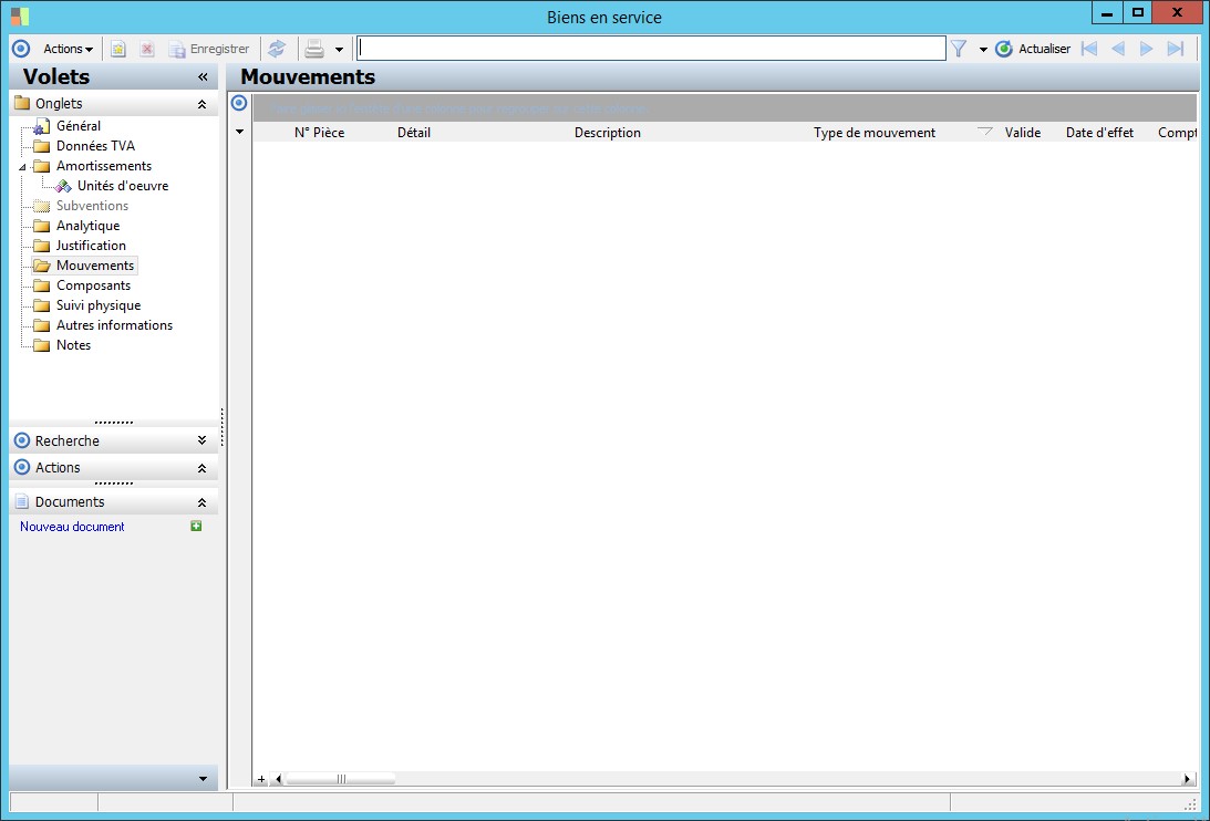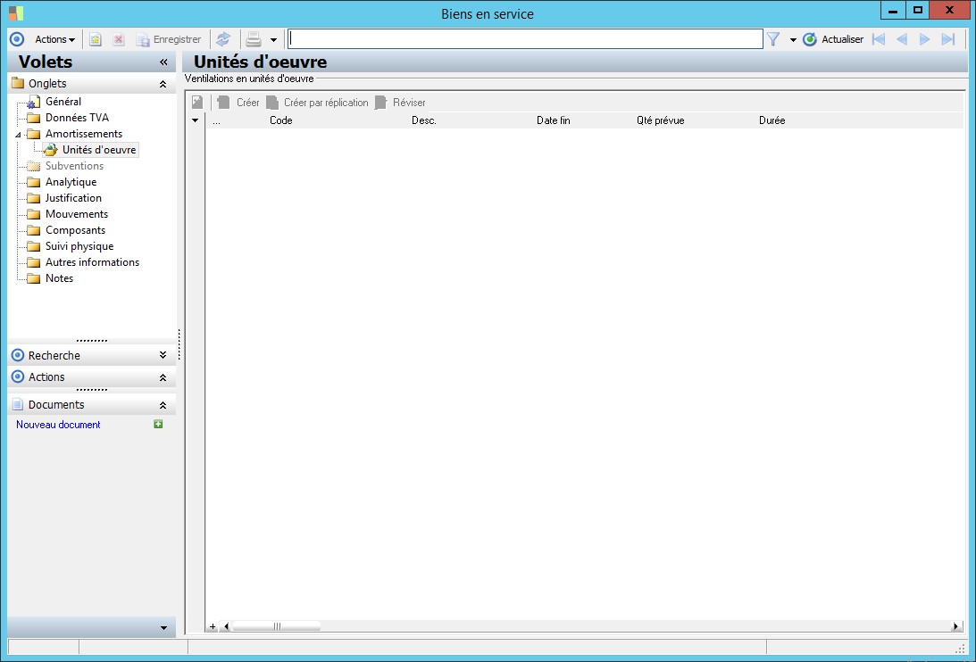Cette zone permet de renseigner la date de mise en service de l'immobilisation. Elle sera automatiquement renseignée si le bien est issu d'un mouvement de mise en service d'en cours. Elle correspond également à la date de début du plan de ventilation en unités d'oeuvre. Cette information n'est plus modifiable lorsque le bien est valide. |