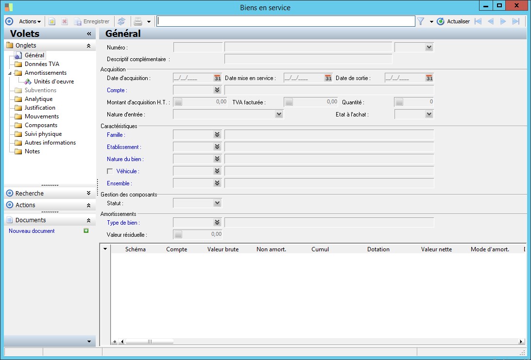 La valeur brute est définie par défaut par la valeur d'acquisition du bien. La valeur brute est modifiable tant que le bien n'a pas été validé. |