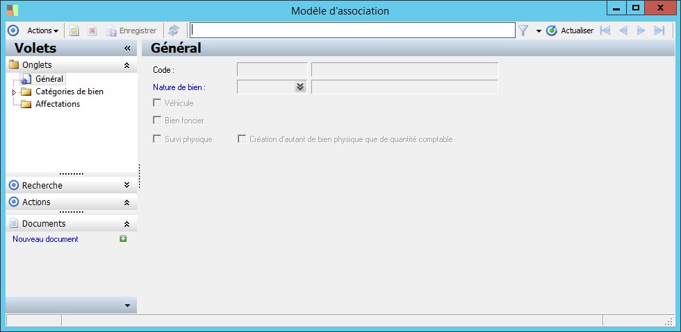 Pour un modèle d'association et une catégorie de bien, il faut indiquer un type de bien. |
