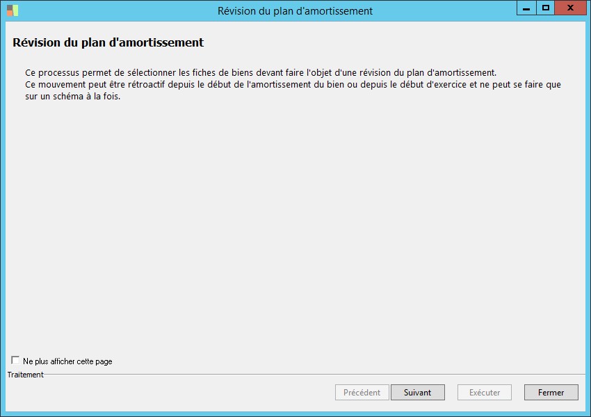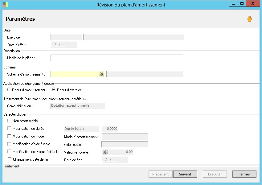 Cette zone indique la date de départ de la modification (Début d'amortissement ou début d'exercice). |