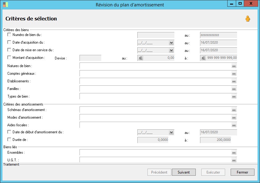 Ce paramètre permet de faire une sélection par date de début d'amortissement (si la case est cochée). |