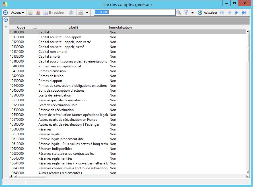 (Sage FRP 1000 Comptabilité) Menu Immobilisations > Fichiers de base > Liste des comptes généraux