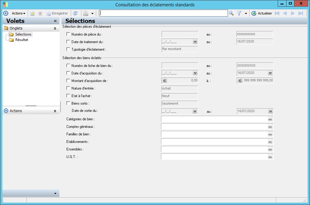 (Sage FRP 1000 Comptabilité) Menu Immobilisations > Suivi comptable > Eclatement > Consultation des éclatements standards