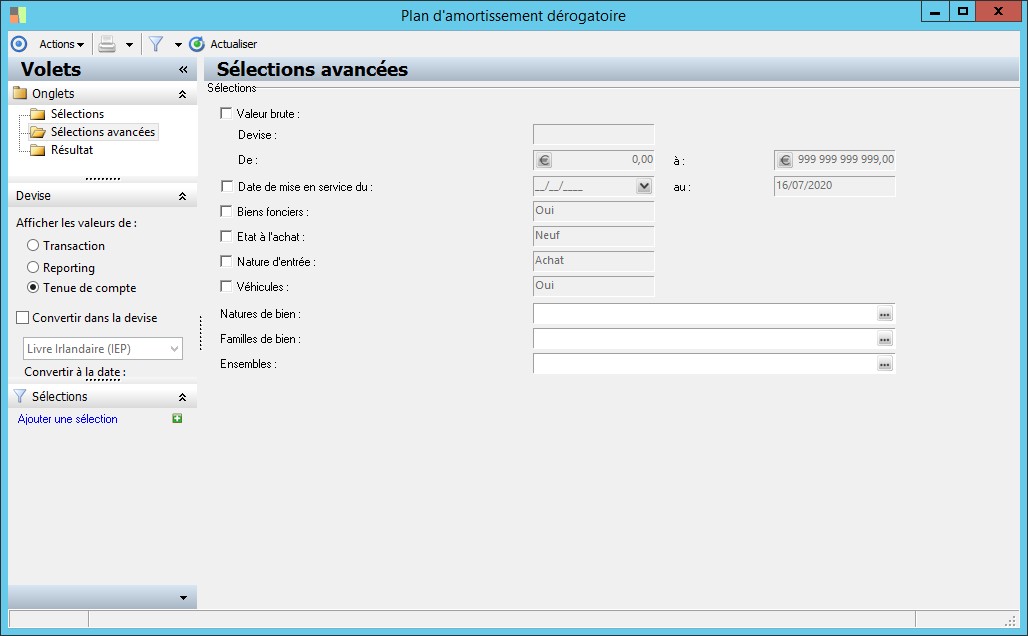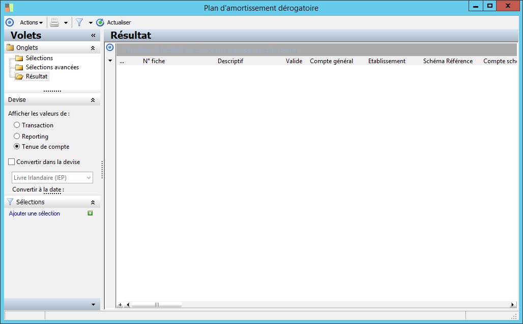 Il s'agit du schéma d'amortissement servant de référence pour le calcul du dérogatoire. La sélection du schéma de référence est obligatoire. |