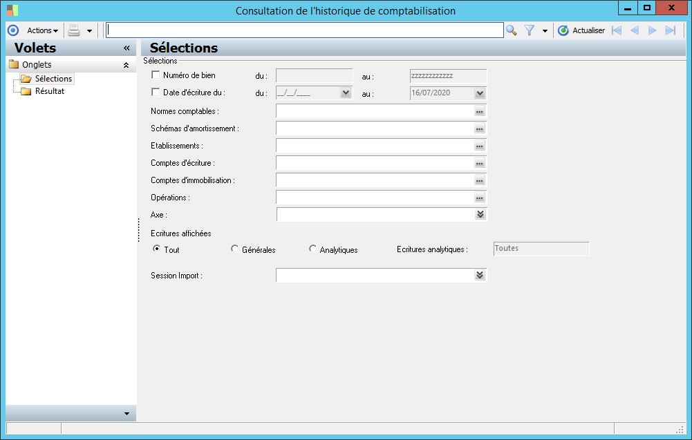 Cette zone vous permet de filtrer les écritures qui seront présentées dans le volet Résultat selon les schémas d'amortissement que vous aurez indiqué. |