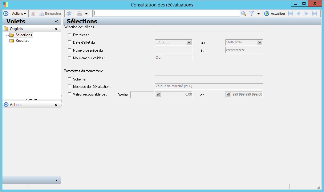 Il est possible de sélectionner une méthode de réévaluation (si la case est cochée). |