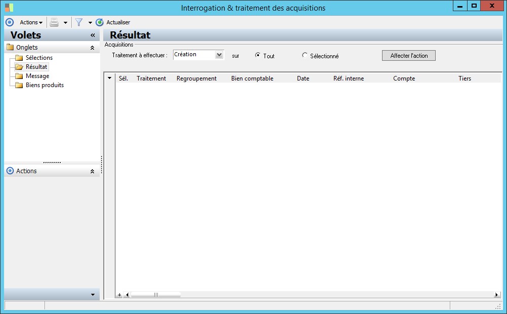 type de traitement : tous, sélectionné, non sélectionné. |