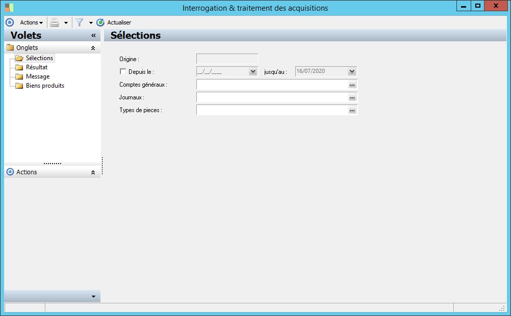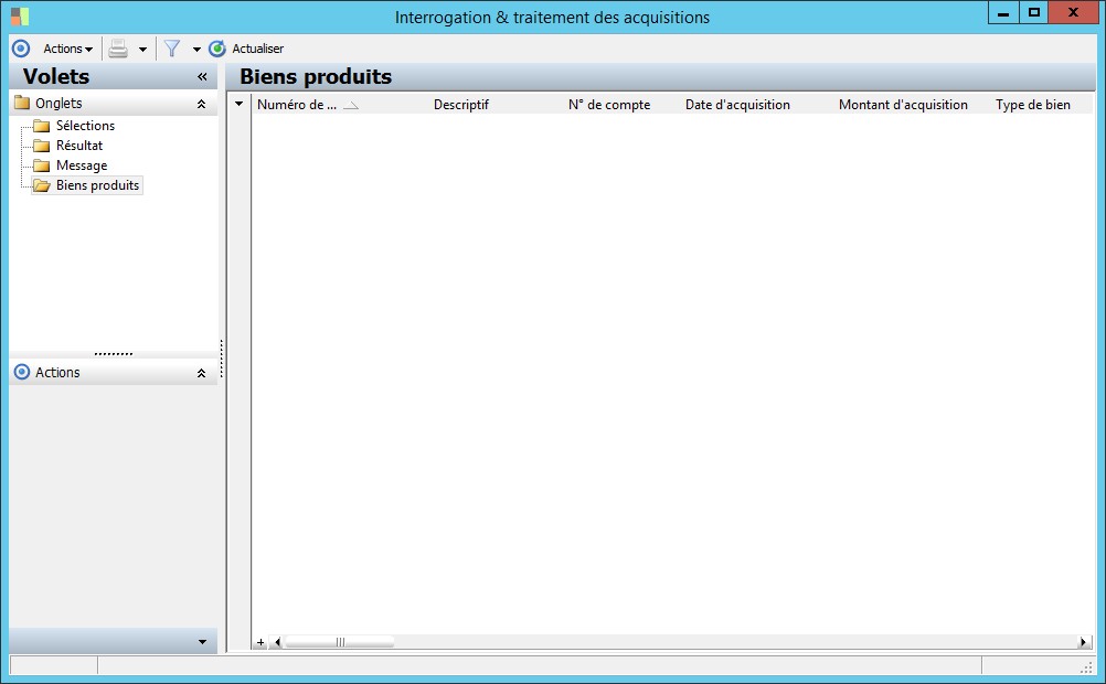 (Sage FRP 1000 Comptabilité) Menu Immobilisations > Suivi comptable > Acquisition > Interrogation & traitement des acquisitions