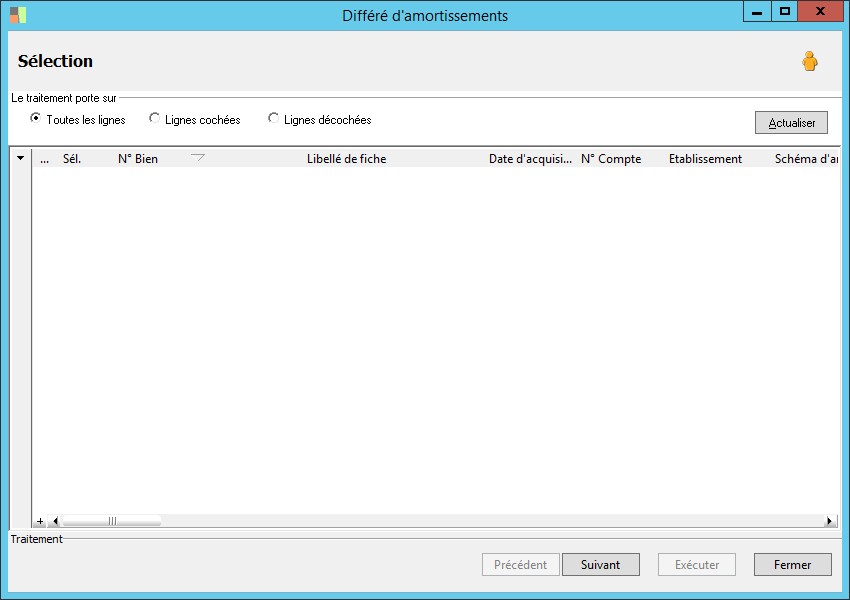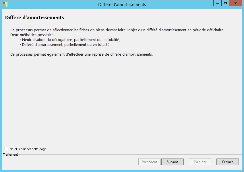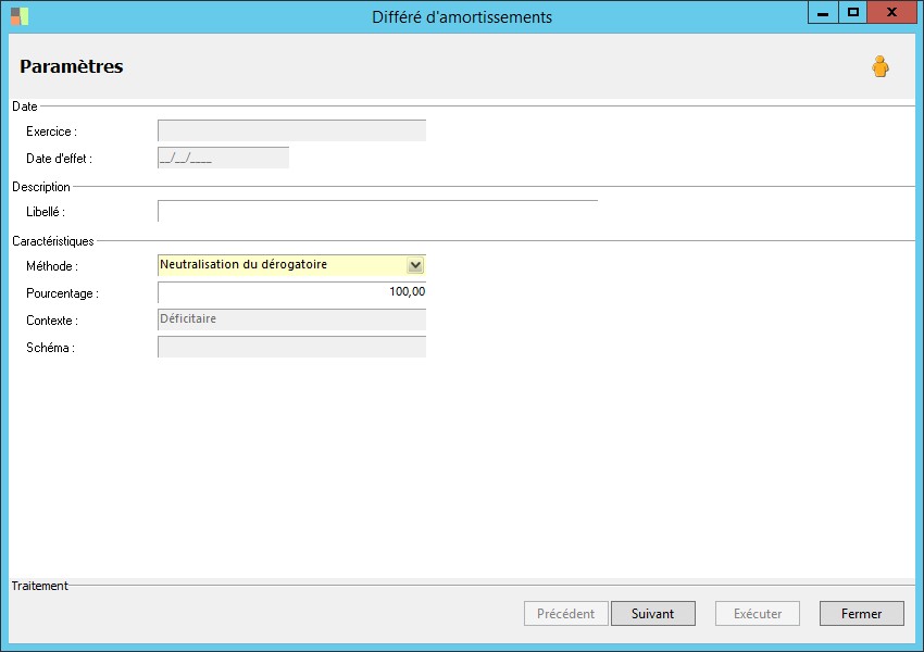 Cette zone qui n'est pas modifiable, indique le contexte dans lequel est géré le différé d'amortissement. |