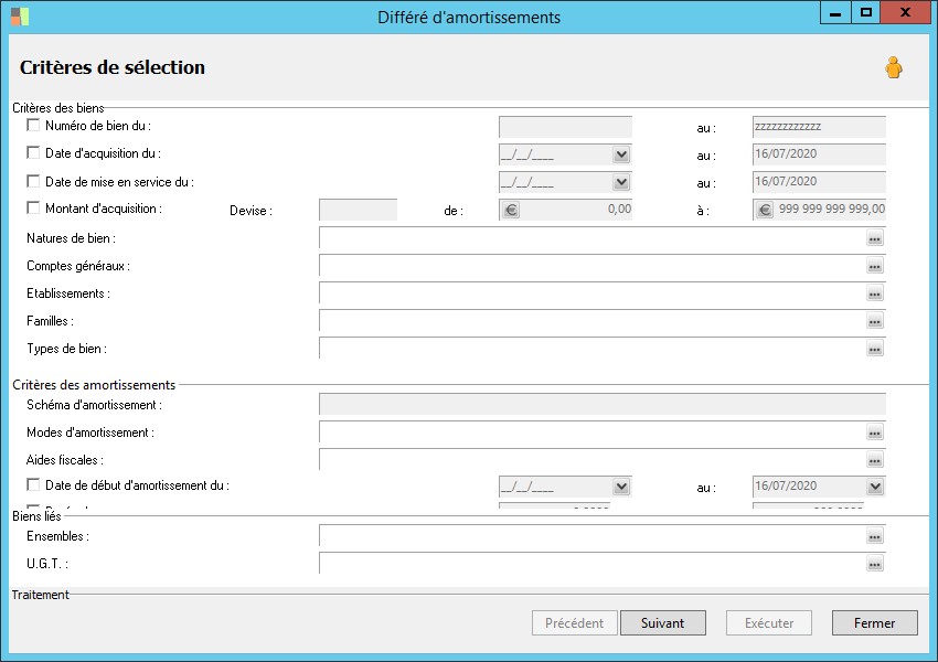 Ce paramètre permet de faire une sélection par date de début d'amortissement (si la case est cochée). |