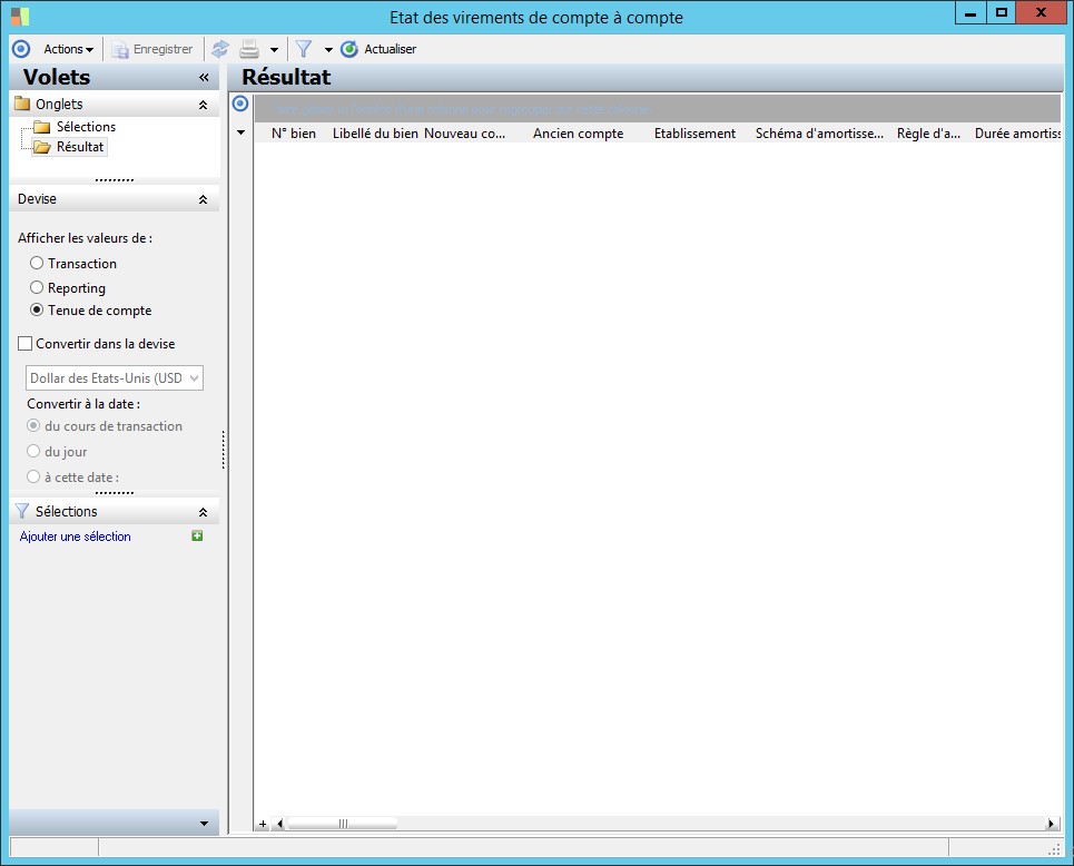 (Sage FRP 1000 Comptabilité) Menu Immobilisations > Suivi comptable > Imputation > Etat des virements de compte à compte