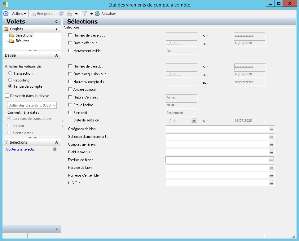 Ce paramètre permet de faire une sélection par date d'acquisition des biens (si la case est cochée). |