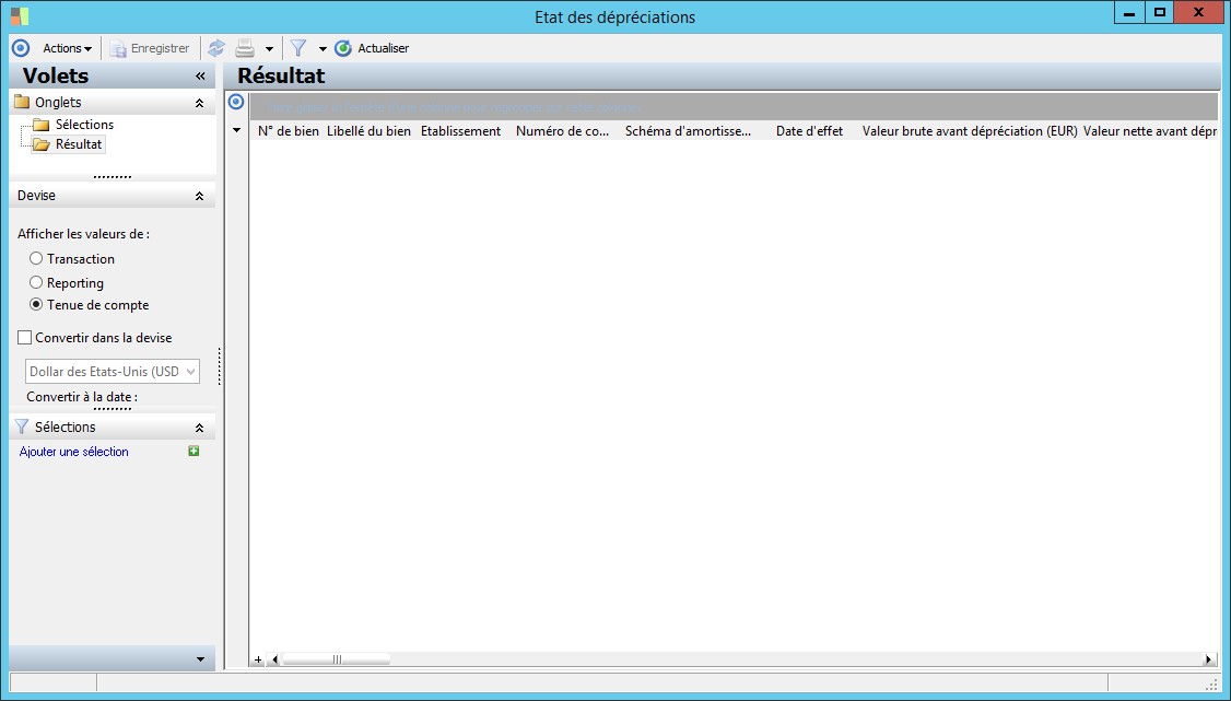 (Sage FRP 1000 Comptabilité) Menu Immobilisations > Suivi comptable > Evaluation > Etat des dépréciations