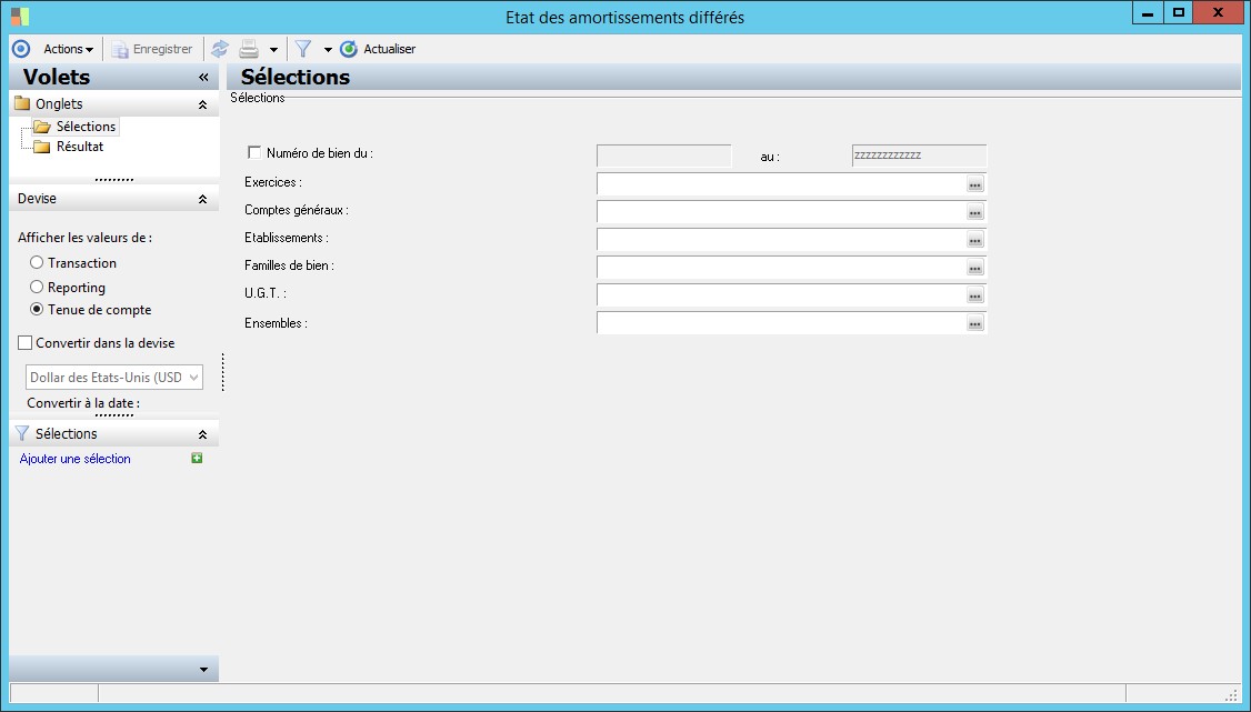 (Sage FRP 1000 Comptabilité) Menu Immobilisations > Suivi comptable > Plan d'amortissement > Etat des amortissements différés