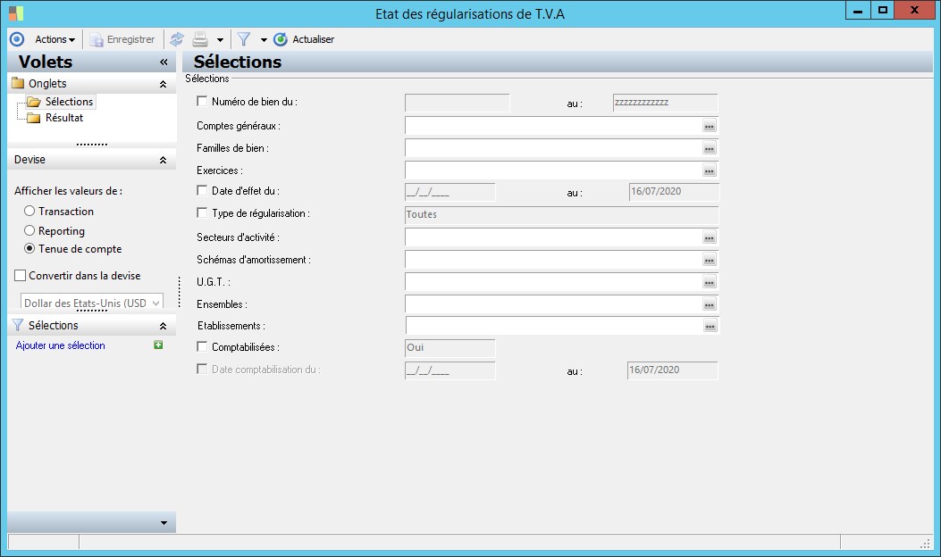 Ce paramètre permet de choisir le type de régularisation de TVA à sélectionner. |