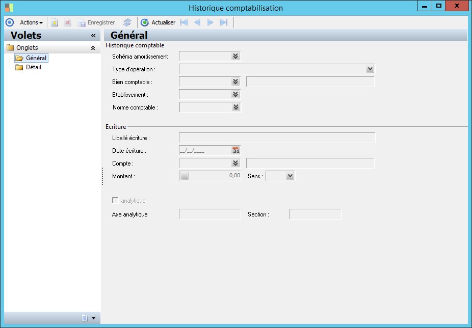 (Sage FRP 1000 Comptabilité) Menu Immobilisations > Arrêtés comptables > Historique comptabilisation