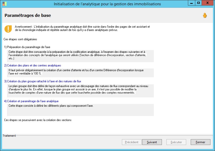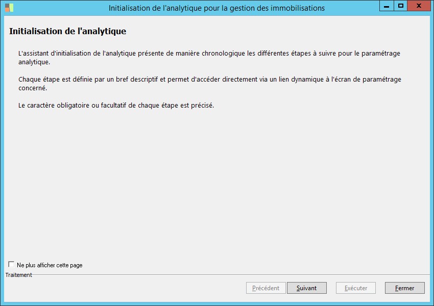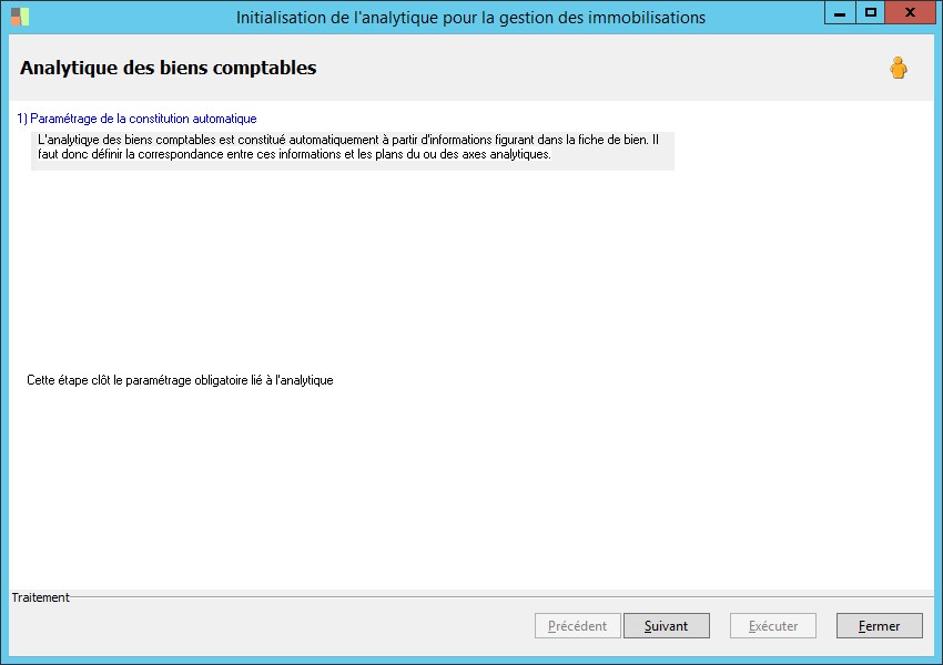 (Sage FRP 1000 Comptabilité) Menu Immobilisations > Initialisation > Initialisation de l'analytique pour la gestion des immobilisations