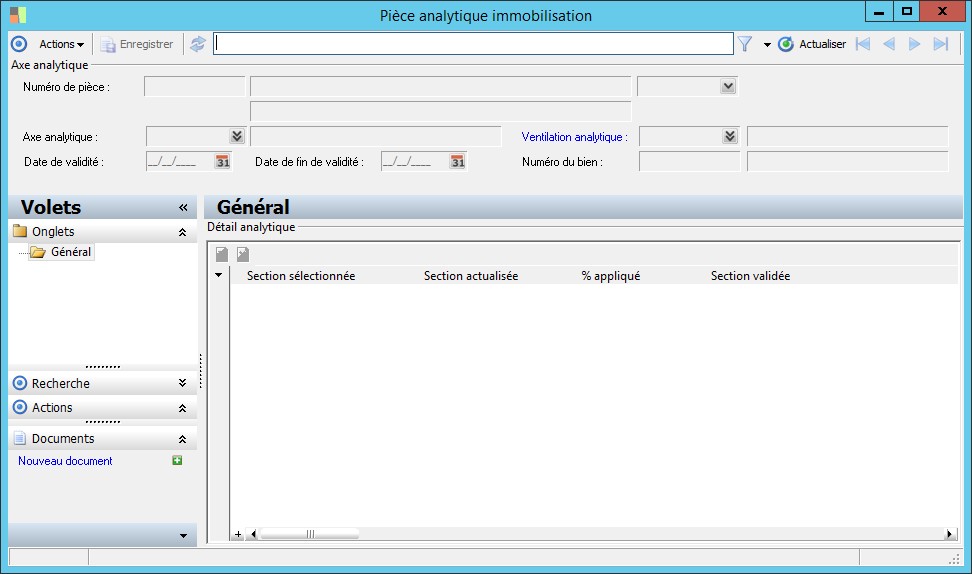 Il s'agit de la date jusqu'à laquelle la pièce analytique est valide, c'est à dire la date jusqu'à laquelle, la ou les ventilations analytiques de la pièce vont s'appliquer.Cette date n'est pas saisissable et va être renseignée automatiquement par l'application à partir du moment où une modification de l'analytique est effectuée. Dans ce cas, une nouvelle pièce analytique est générée. A la validation de cette nouvelle pièce, la date de fin de validité sera automatiquement mise à jour sur la précédente pièce analytique. |