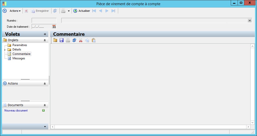 Cette zone permet de saisir un commentaire sur la pièce de mouvement. |