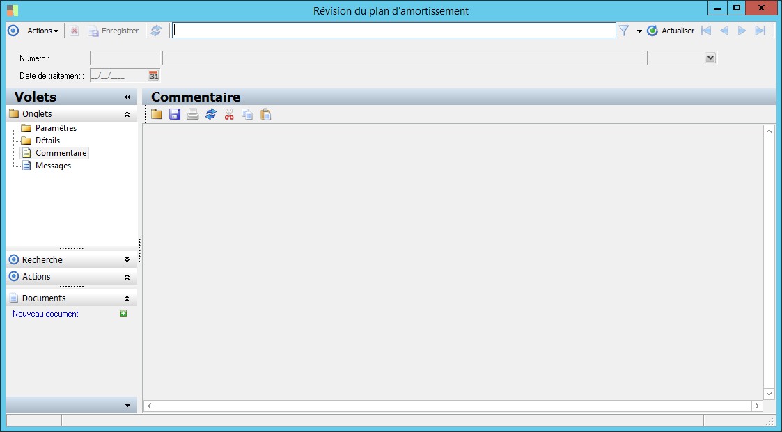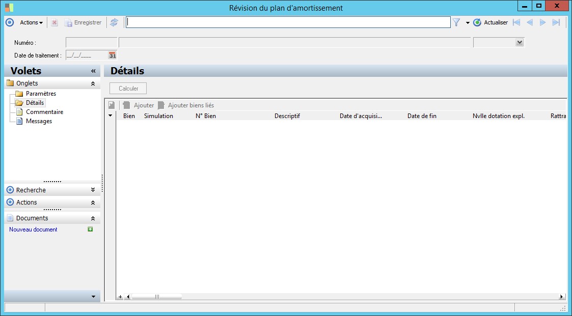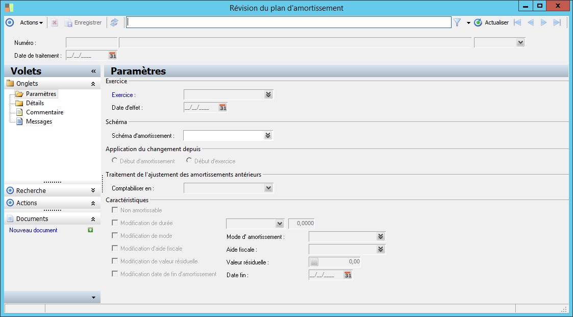 (Sage FRP 1000 Comptabilité) Menu Immobilisations > Suivi comptable > Biens > Révision du plan d'amortissement