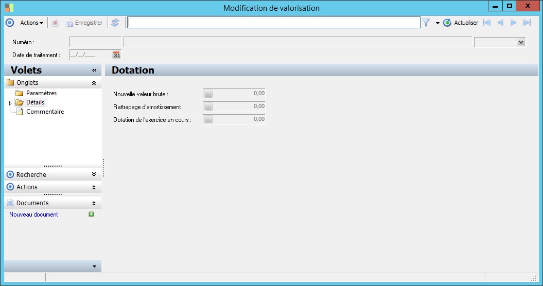 Cette zone correspond au montant du rattrapage d'amortissement suite à une modification de valorisation. |