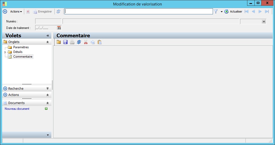 Cette zone indique le statut de validation de la pièce. Cette information n'est jamais saisissable et est modifiable via une action dédiée. |