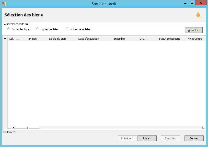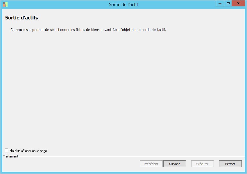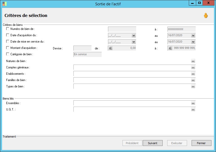 (Sage FRP 1000 Comptabilité) Menu Immobilisations > Suivi comptable > Sortie > Sortie de l'actif