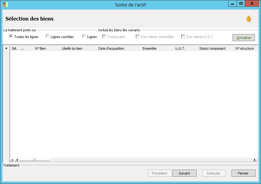 Cette option permet, lorsqu'elle est cochée, d'inclure les biens ayant la même Unité Génératrice de TRésorerie que le bien sélectionné. |
