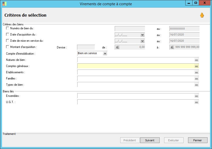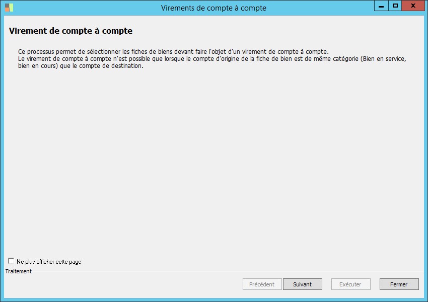 (Sage FRP 1000 Comptabilité) Menu Immobilisations > Suivi comptable > Imputation > Virements de compte à compte