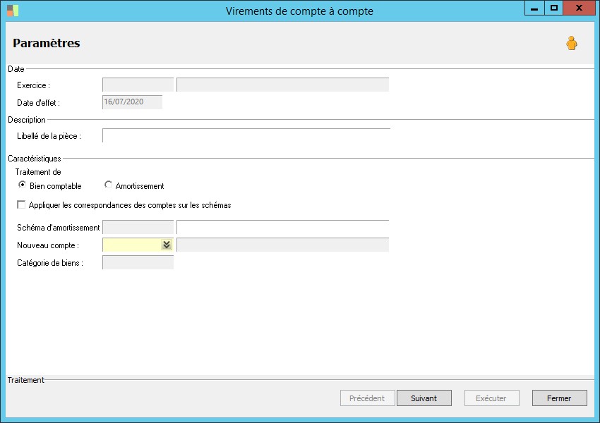 Cette option permet d'effectuer le changement de compte au niveau bien ou au niveau d'un schéma d'amortissement. |