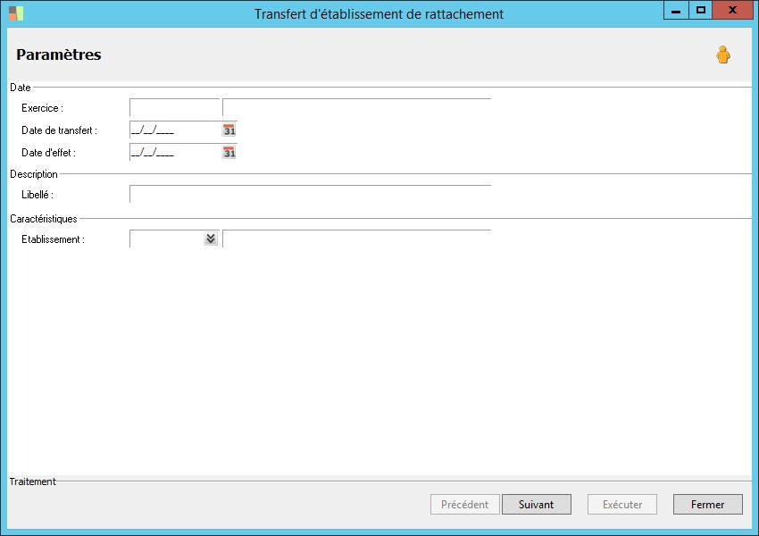 Cette zone permet de renseigner le libellé de la pièce de transfert d'établissement. |