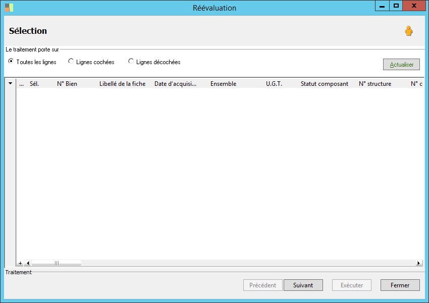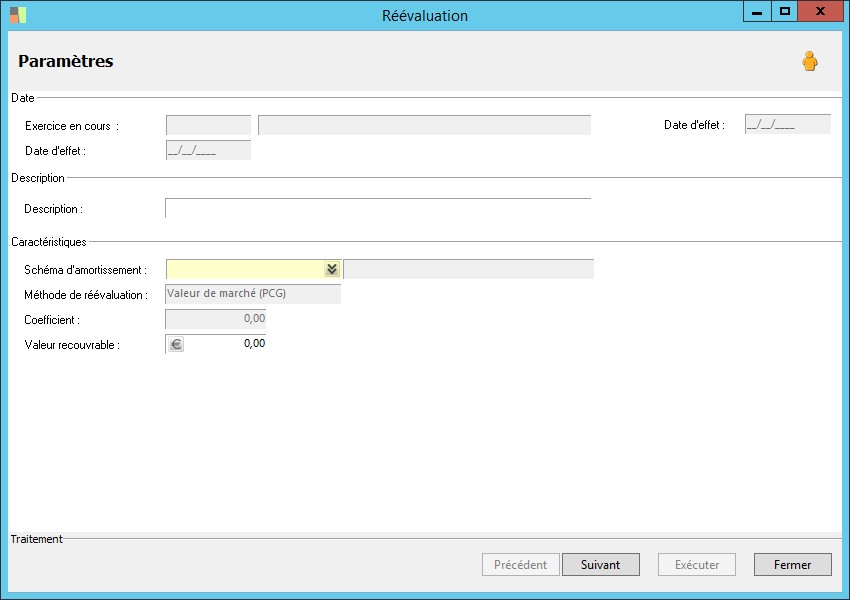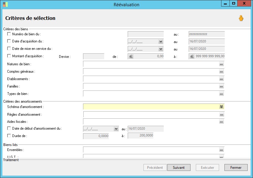 (Sage FRP 1000 Comptabilité) Menu Immobilisations > Suivi comptable > Evaluation > Réévaluation