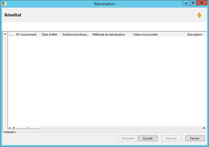 Vous pouvez saisir la valeur recouvrable globale de l'ensemble des biens à réévaluer. Si vous avez saisi un coefficient, il est inutile de renseigner la valeur recouvrable, puisque celle-ci sera calculée. |