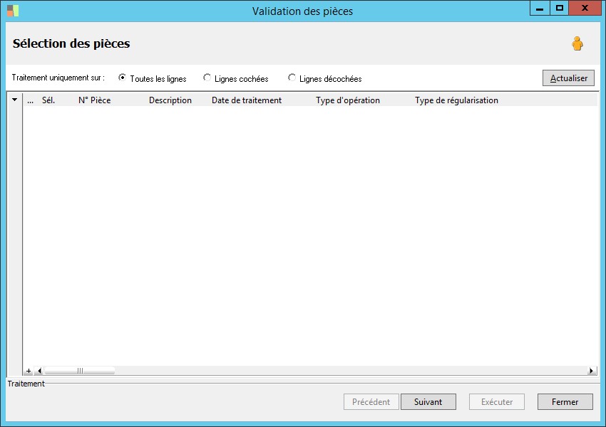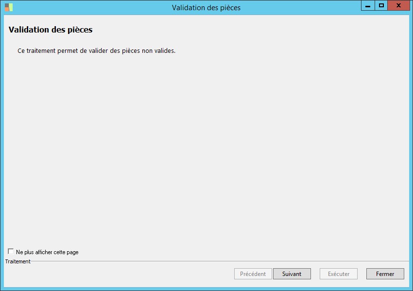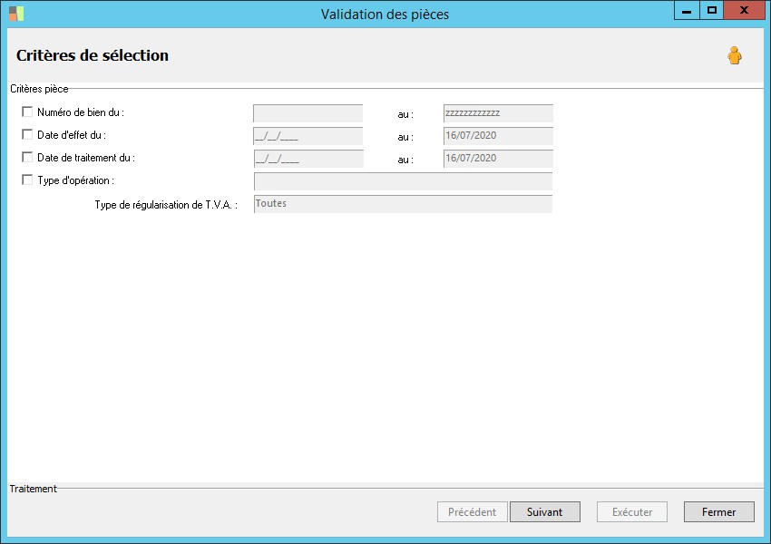 (Sage FRP 1000 Comptabilité) Menu Immobilisations > Suivi comptable > Validation > Validation des pièces