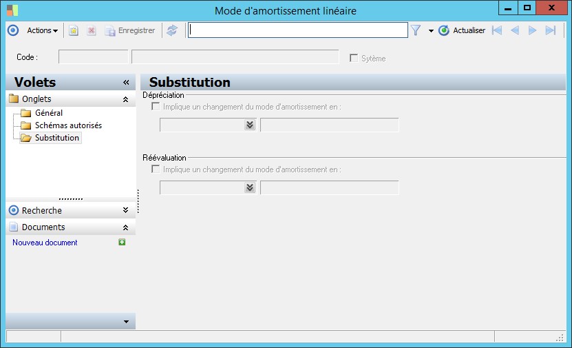 Cette zone permet d'indiquer le mode d'amortissement qui devra être appliqué suite à une réévaluation. |