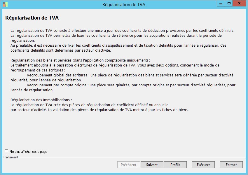 Toutes les pièces de régularisation de TVA (en gestion des immobilisations) concernant l'année précédente doivent être validées.