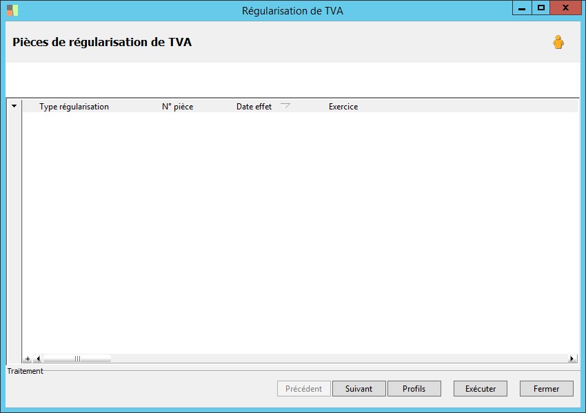 Les pièces de régularisation de TVA qui sont générées sont non saisissables mais pas historisées.