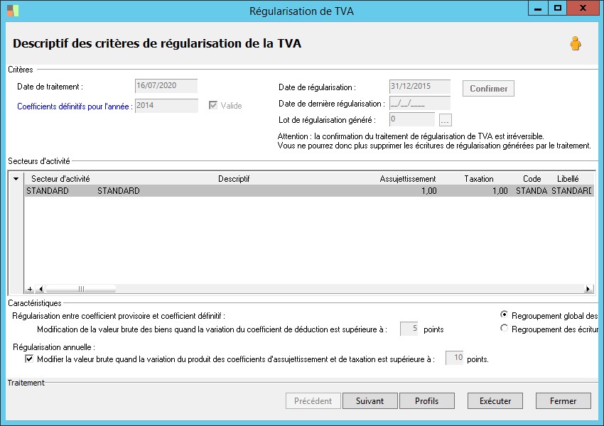 Suite à l'exécution du traitement, sa confirmation ne pourra avoir lieu que si aucune nouvelle pièce n'a été saisie avec coefficient de déduction sur l'année de régularisation.