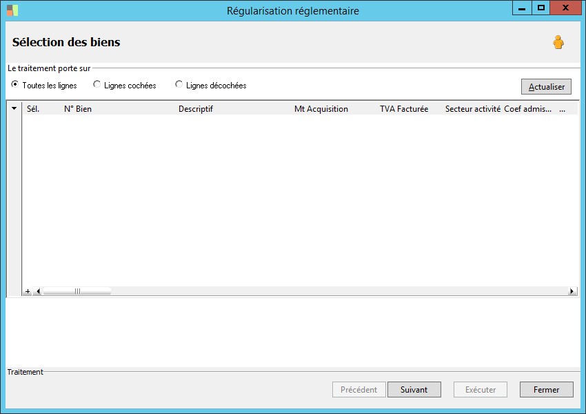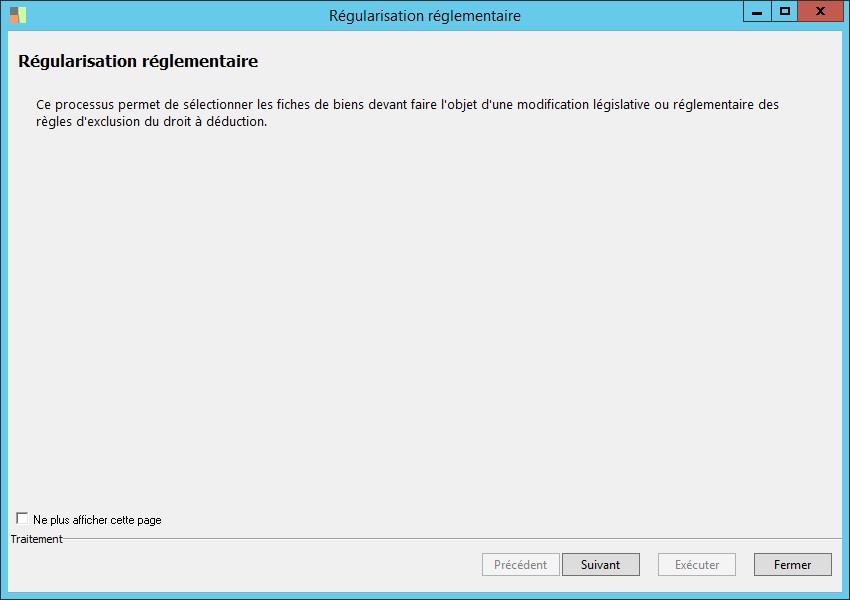(Sage FRP 1000 Comptabilité) Menu Immobilisations > Suivi comptable > T.V.A. > Régularisation réglementaire