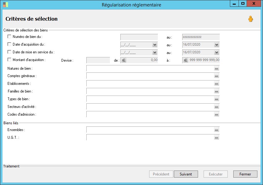 Cette option permet, lorsqu'elle est cochée, d'inclure les biens ayant la même Unité Génératrice de TRésorerie que le bien sélectionné. |