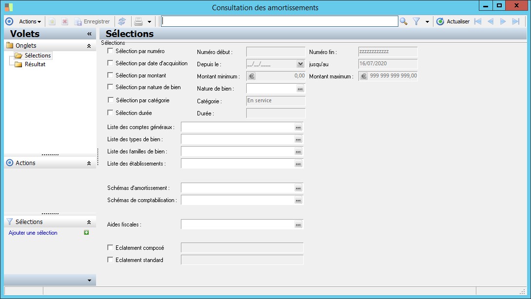 Ce paramètre permet de faire une sélection sur la durée d'amortissement (si la case est cochée). |
