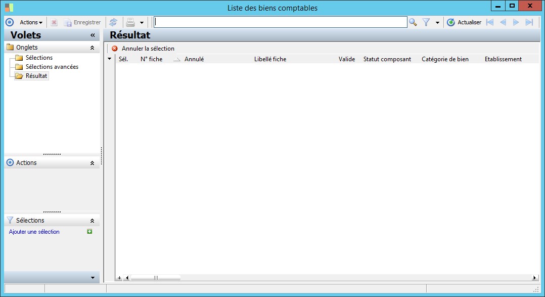 Il est possible de sélectionner dans cette zone un éclatement en composants. Vous obtiendrez ainsi, le bien à l'origine de l'éclatement ainsi que les biens créés suite à l'éclatement, c'est à dire les composants. |