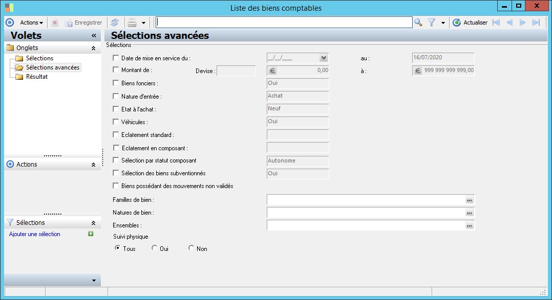 ce paramètre permet de lister les biens comptables qui font l'objet d'un suivi physique. |