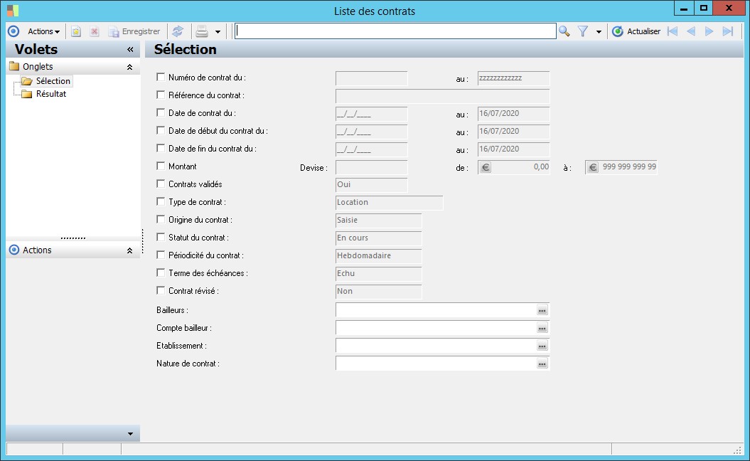 Ce paramètre permet de faire une sélection sur la validité du contrat (si la case est cochée). |