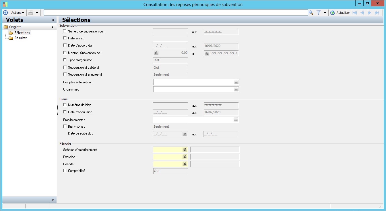 Ce paramètre permet de sélectionner les subventions comptabilisées ou non. |