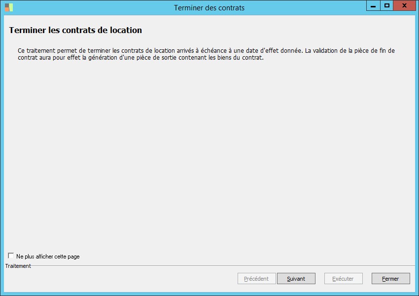 (Sage FRP 1000 Comptabilité) Menu Immobilisations > Contrats > Terminer des contrats