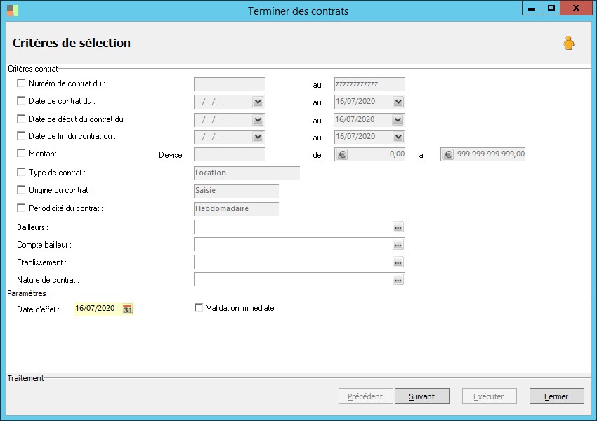 Ce paramètre permet de faire une sélection sur la date de contrat (si la case est cochée). |