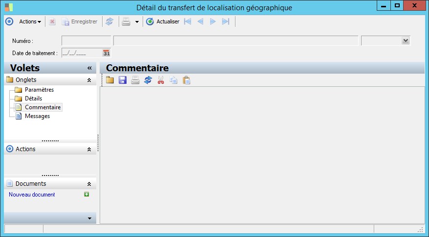 Cette zone permet de saisir un commentaire sur la pièce de mouvement. |
