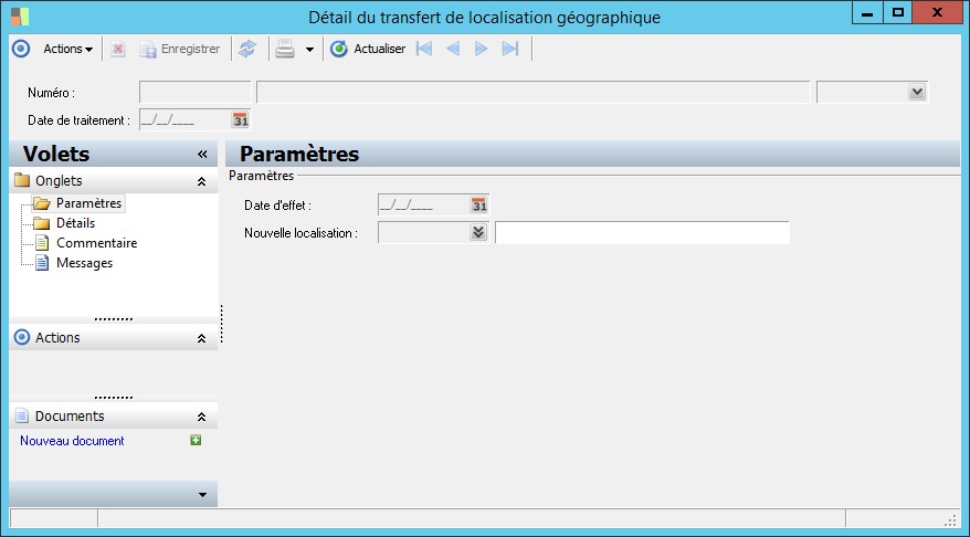 Cette zone vous permet d'indiquer la nouvelle localisation géographique. |